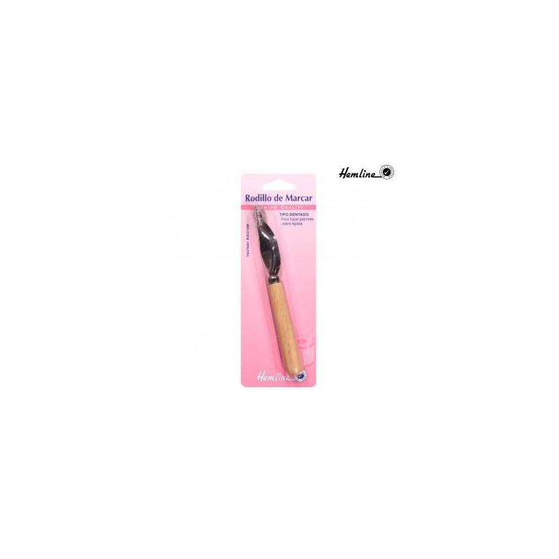 Marcador rotativo dentado para passagem do desenho dos moldes ao tecido.