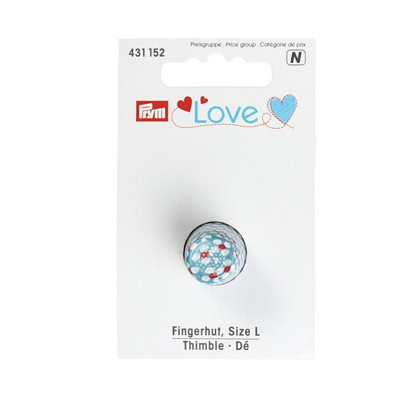 Os dedais coloridos “Prym Love” são muito apelativos com os seus discretos padrões florais sobre fundos brancos, vermelhos ou azuis claros. Quem acha que um design atraente é importante além da funcionalidade na hora de costurar vai se apaixonar por este dedal. Prym tem os elegantes dedais “Prym Love” nos tamanhos S, M e L. O aço revestido robusto e o cume antiderrapante típico no topo do dedal tornam-no a proteção perfeita para os dedos para todas as atividades de costura.