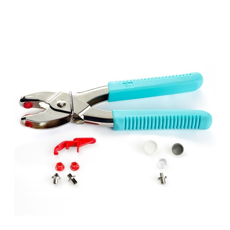 917 321 358**Prym Love - Alicate VARIO Perfurador + Set Color Snaps Col. Love (390901) Alicate muito versátil para produtos não cosidos como botões de pressão, ilhoses, botões de jeans, rebites, etc. Inclui ainda set de ferramentas Color Snaps. Com ferramentas de perfuração para diâmetros de 3 e 4 mm.