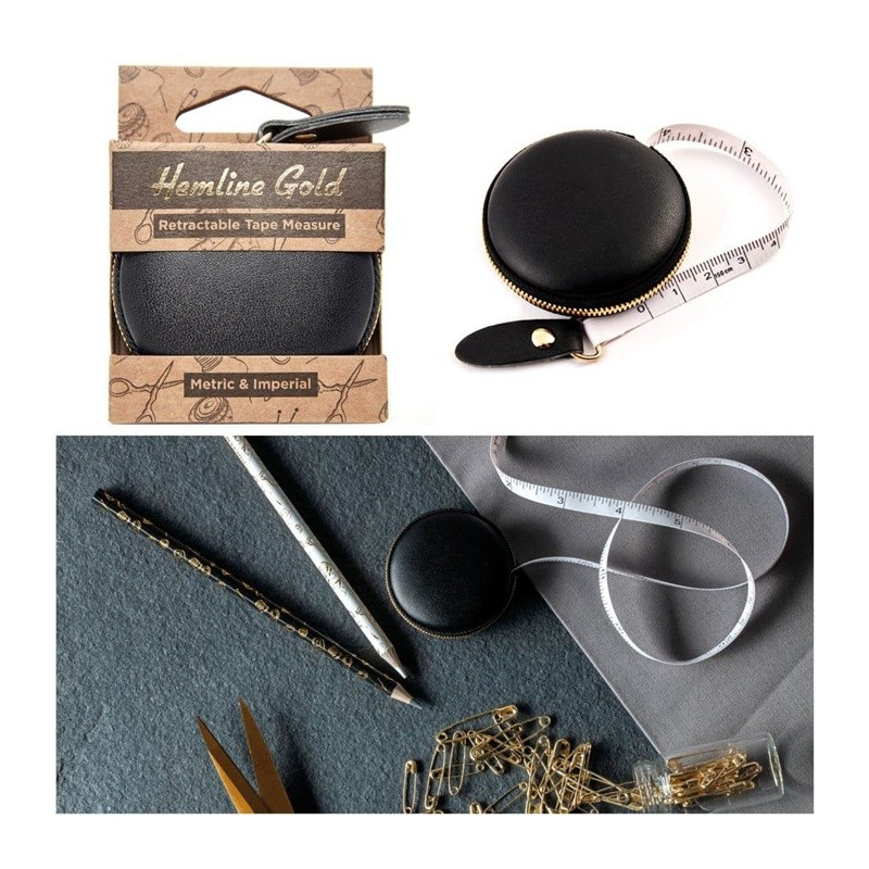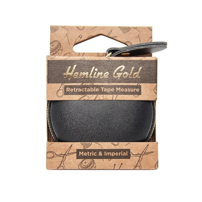 A Fita Métrica Retrátil da Hemline Gold é um acessório prático para medir seus projetos de costura ou artesanato. Esta fita mede 150 cm no total e apresenta uma escala em centímetros e polegadas, cada uma em um lado diferente. Os números são muito fáceis de identificar em seu fundo preto.
