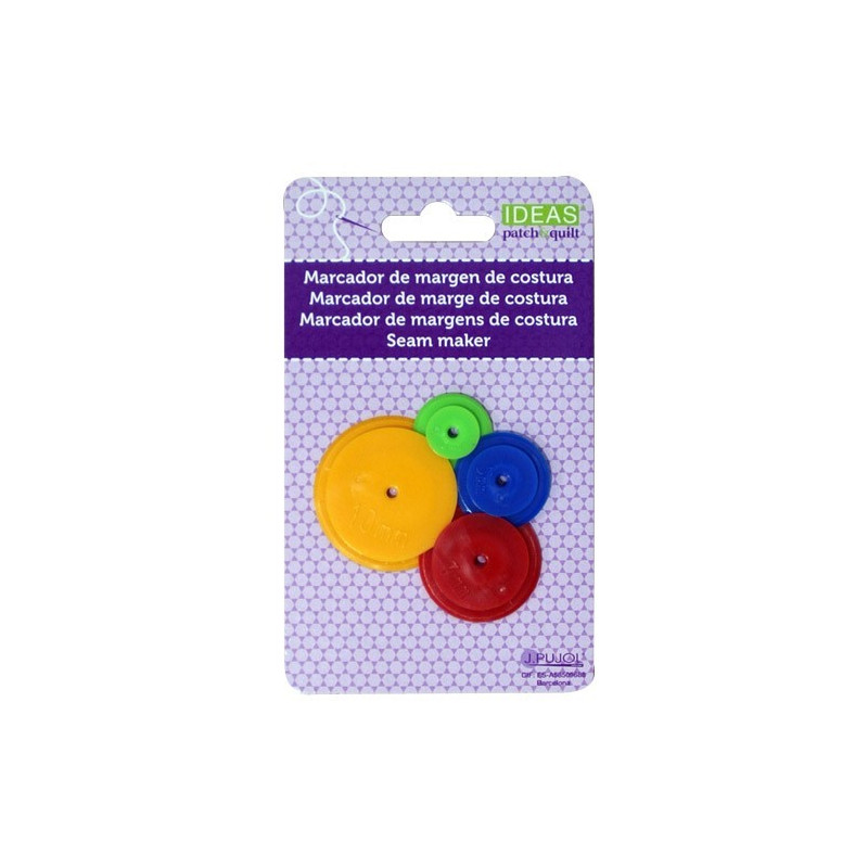 Vem num conjunto de 5 marcadores de costura (3 mm / 5 mm / 7 mm / 10 mm e 15 mm de largura). Os marcadores são feitos de resina ABS em diferentes cores: menta (15mm), rosa (10mm), amarelo (7mm), azul (5mm) e verde (3mm).