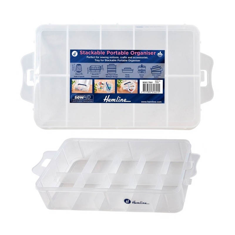 Prático sistema de armazenamento perfeito para costura, artesanato e acessórios em geral. Com clipes seguros para tampa ou bandeja superior.