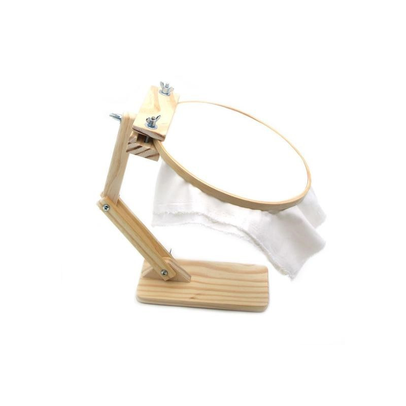 Facilita o trabalho de bordado, permitindo a sua execução com as duas mãos livres, além de auxiliar em manter uma postura correta para a atividade.