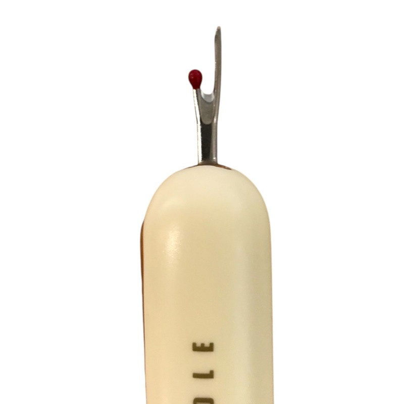 Este acessório compacto junta duas ferramentas indispensáveis num só artigo: de um lado, o clássico descosedor para desfazer costuras com precisão; do outro, o passa-linhas, ideal para enfiar linhas em agulhas com facilidade.
