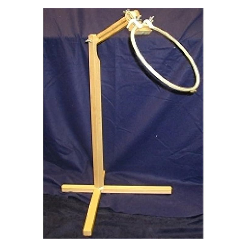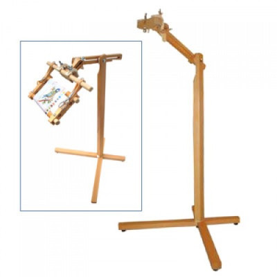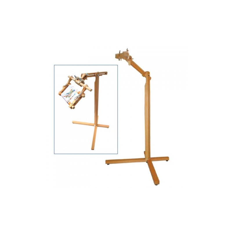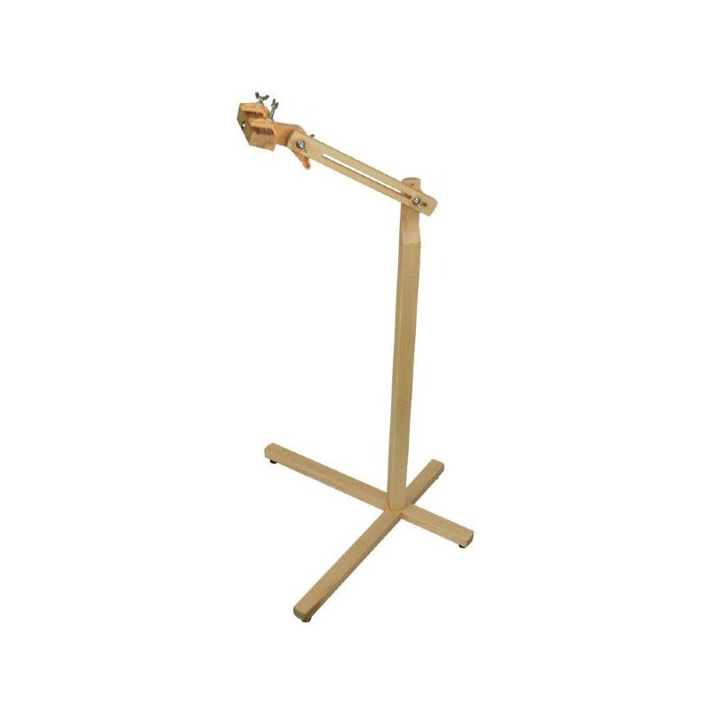 Suporte com cabeça giratória de 360 graus e tampa articulada.As juntas Posilock mantêm o suporte firme na posição desejada.Altura ajustável de 50 cm a 100 cm.Ideal para apoiar bastidores de bordado e quilting.Madeira polida.