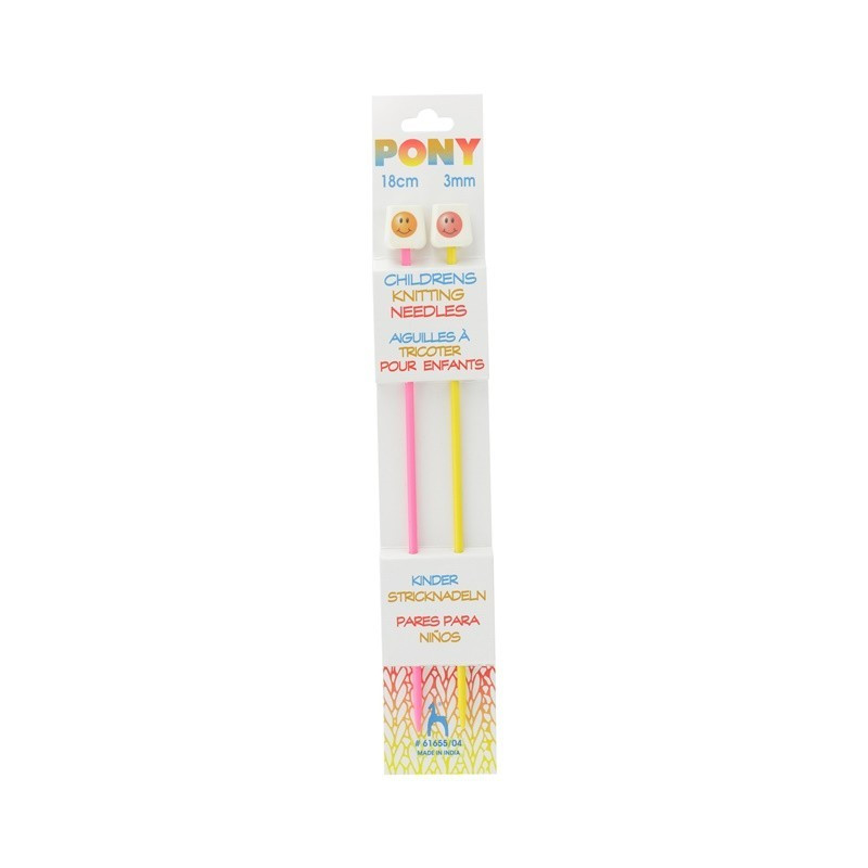 917 321 358**Pony - Com as agulhas de tricô PONY para crianças, até os mais pequenos aprendem como é divertido fazer as primeiras criações próprias em lã, de plástico e com 18 cm têm as dimensões ideais para isso. Cada par de agulhas de tricô infantil coloridas consiste em duas cores, de modo que as linhas direita e esquerda podem ser reconhecidas imediatamente.