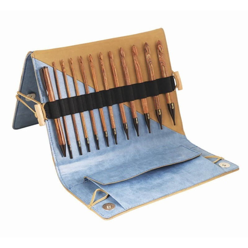 KnitPro Ginger apresenta o conjunto de 11 agulhas intercambiáveis de crochet de diferentes tamanhos (de 3,5 mm a 12 mm) feitas à mão por artesãos qualificados.