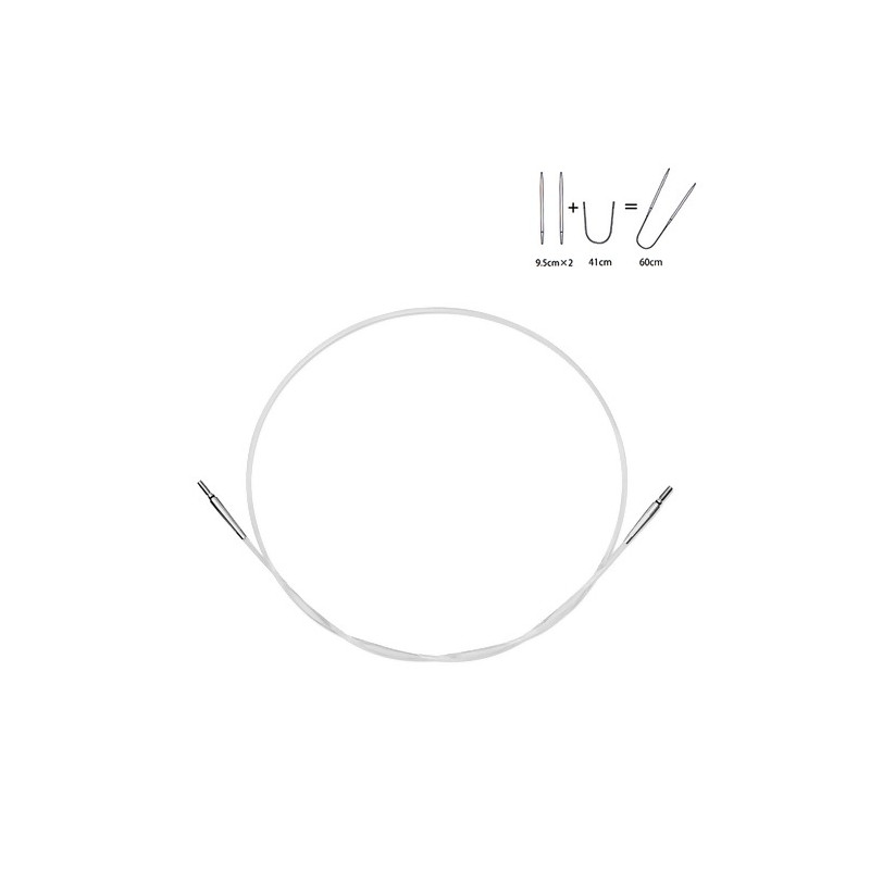 Estas agulhas têm 9,5cm de comprimento e estão disponíveis em tamanhos finos para tricotar fios delicados, e prendem-se aos cabos CarryC da Tulip. O conector permite que o cabo gire e evita que ele se enrole durante o trabalho.