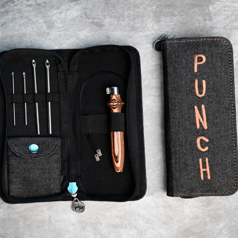 conjunto KnitPro Punch Needle inclui as ferramentas essenciais para os amantes do bordado Punch Needle. Encontrará uma agulha perfuradora que permite criar pontos uniformes em forma de laçadas, dando vida a uma variedade de designs no seu tecido. Poderá ajustar o comprimento das agulhas, dando-lhe controle total sobre o comprimento dos laços nas suas criações.