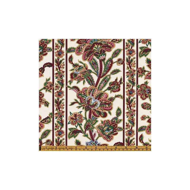 Tecido estampado com motivo de chita de Alcobaça. Padrão Shangrila com as tradicionais flores e riscas.