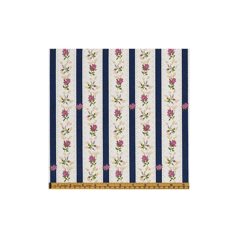 Tecido estampado com motivo de chita de Alcobaça. Padrão Pombalino com as tradicionais flores e riscas.