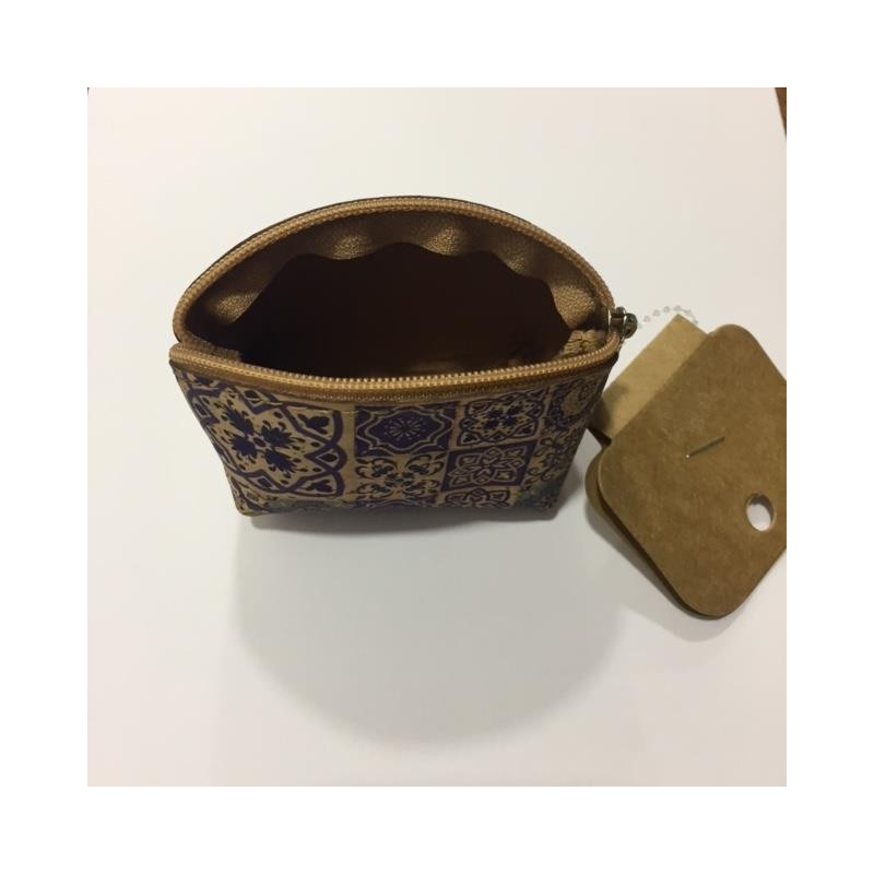 Porta moedas em cortiça com padrão inspirado nos azulejos de Portugal.Dimensões - 9.5 x 6cm