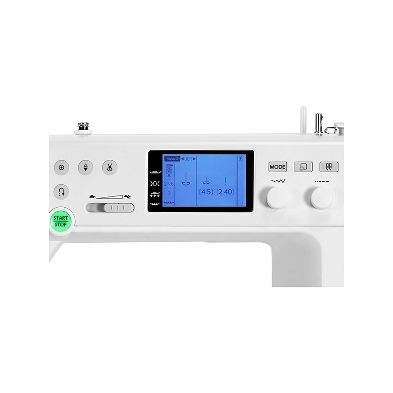Controle com um toque no botão - Permite costurar sem utilizar o pedal, dando mais liberdade e controle para a costura! Ao manter pressionado inicia e para a costura em velocidade lenta. Controle manual de velocidade - Permite costurar em velocidade uniforme e também limitar a velocidade máxima do pedal de controle. Corte automático após o remate do ponto - Programe e a máquina irá cortar as linhas automaticamente. Use com linhas grossas, difíceis ou especiais - Prático e rápido para cortar a linha sem precisar da tesoura. Ponto satin com 5 tamanhos diferentes - Costure pontos cheios especiais para decorar seus projetos de costura. Mais facilidade e rapidez - Costure pontos decorativos espelhados sem mudar a posição do tecido.
