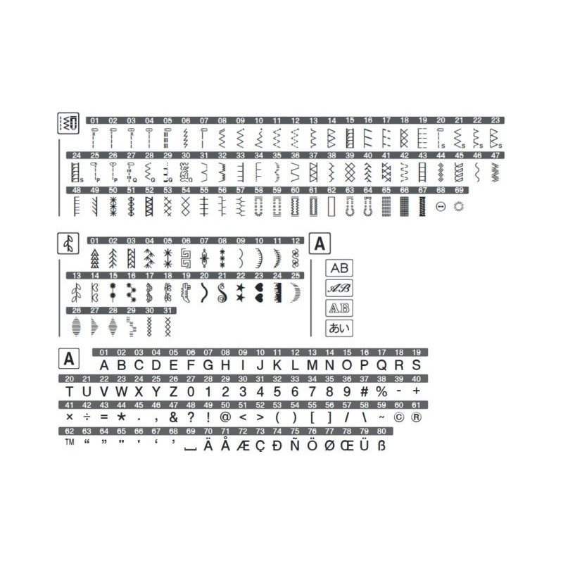 A moderna máquina eletrónica F410 possui 100 pontos, entre eles, pontos utilitários, decorativos e caracteres, além de 4 tipos de alfabetos com letras maiúsculas e uma ampla área de trabalho de 10x19cm cm.