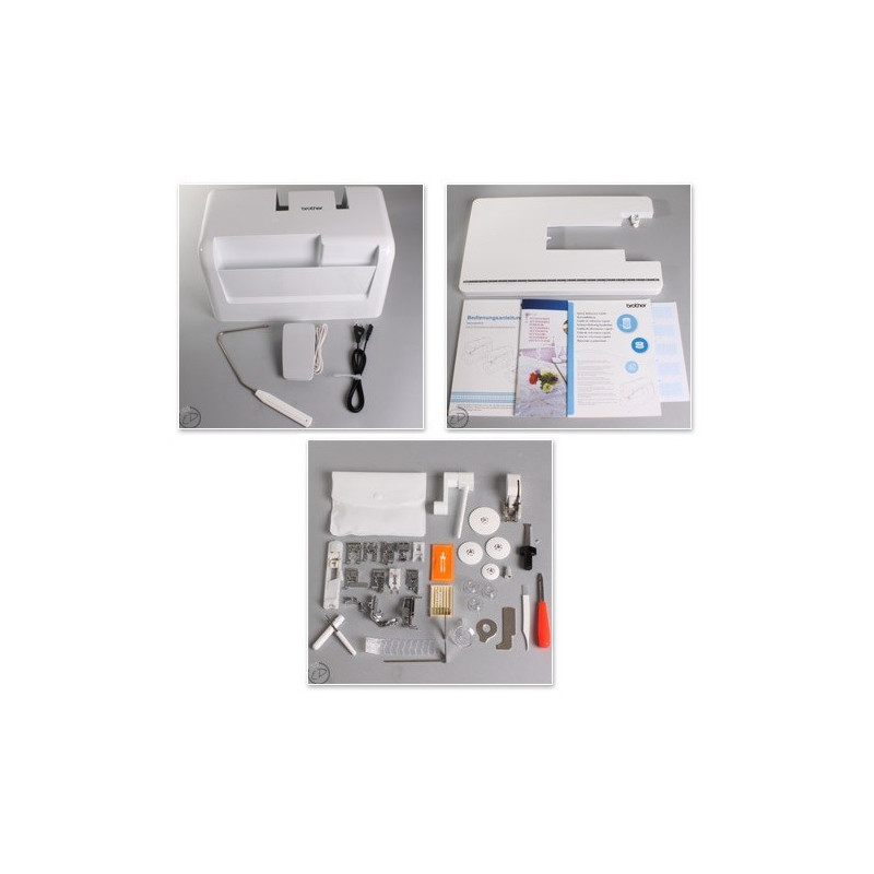 A Brother 1800Q tem 133 pontos incluídos: 99 pontos uteis que compreendem 10 estilos de casa de botão automática em uma única fase, 133 botões decorativos e cinco fontes (três alfábeticos, um cirilico, um japonês)