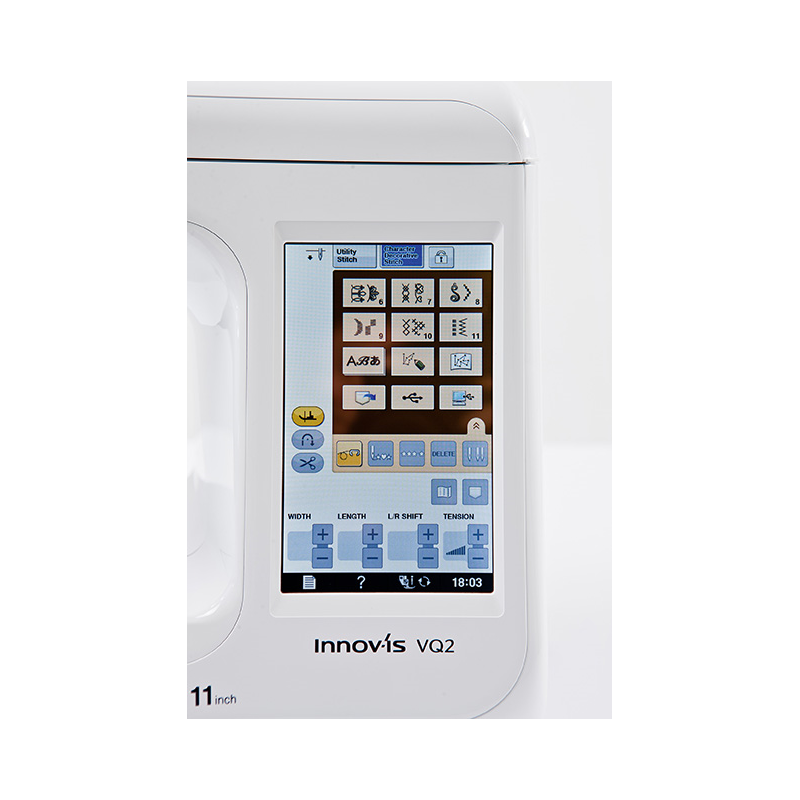 Gosta de tecidos, encontrar novos bordados e aprender novas técnicas de costura? Você tem muitas ideias na cabeça e a sua casa é cheia de livros, bordados e tecidos em linho e seda? Para você a costura é arte? Agora com Innov-is VQ2 com tela touch screen e braço extralongo de 285mm, ideal para trabalhos de grandes dimensões como casacos e colchas, você pode-se divertir usando até tecidos de grandes dimensões.