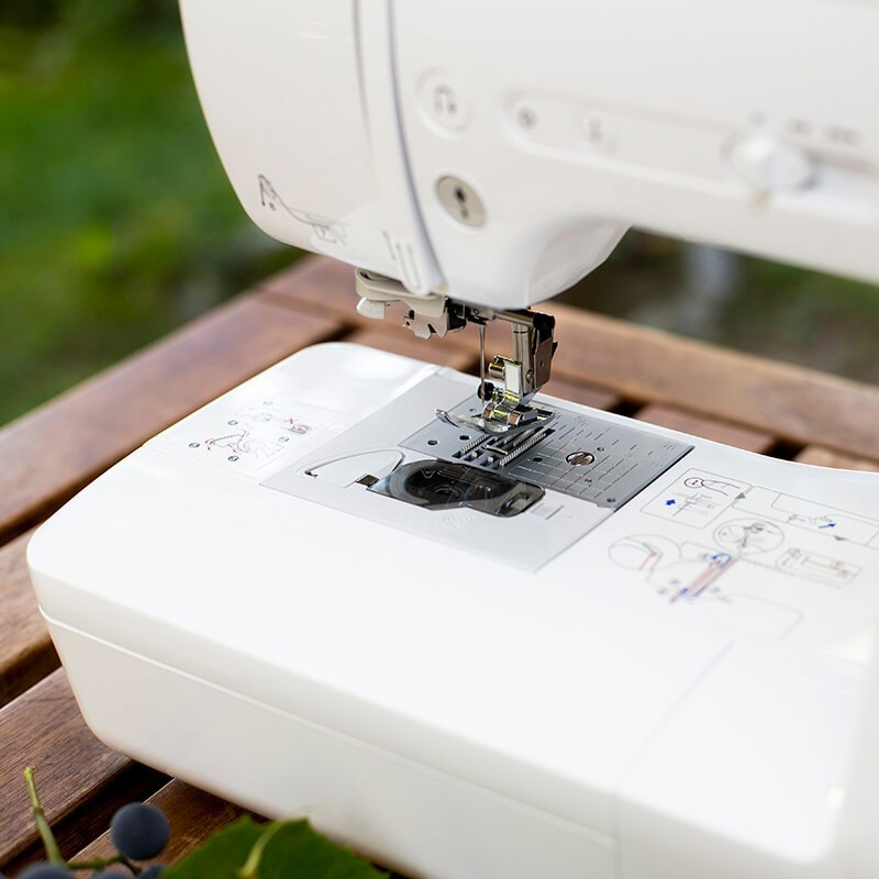 As máquinas da série A são leves e transportáveis para permitir levar em viagens, nos cursos de costura ou para a casa de amigos.