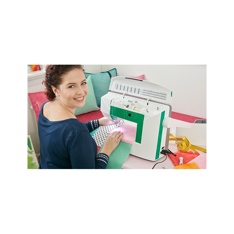 Enorme variedade de pontos decorativos: selecione entre 82 pontos, incluindo pontos básicos, casas de botão, pontos decorativos de 7 mm, pontos para patchwork, pontos em cruz e pontos para bainha.