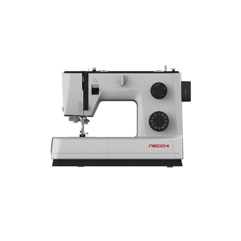 A nova Necchi Q132A é uma máquina robusta e sólida, é equipada com estrutura metálica e base de trabalho com gancho giratório e regulador de pressão do calcador e com 32 pontos.