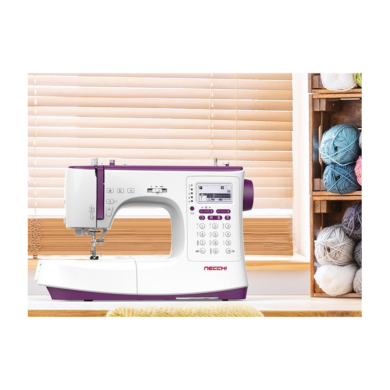 A máquina de costura computadorizada Necchi NC-204D tem 439 pontos e oferece a capacidade de selecionar o ponto desejado com um simples toque de um botão e um display LCD transparente. Inclui 13 estilos de caseado de 1 passo, 3 conjuntos de pontos alfanuméricos de monograma básico. O design da máquina de costura inclui um ângulo de visão ideal e uma superfície de trabalho confortável.