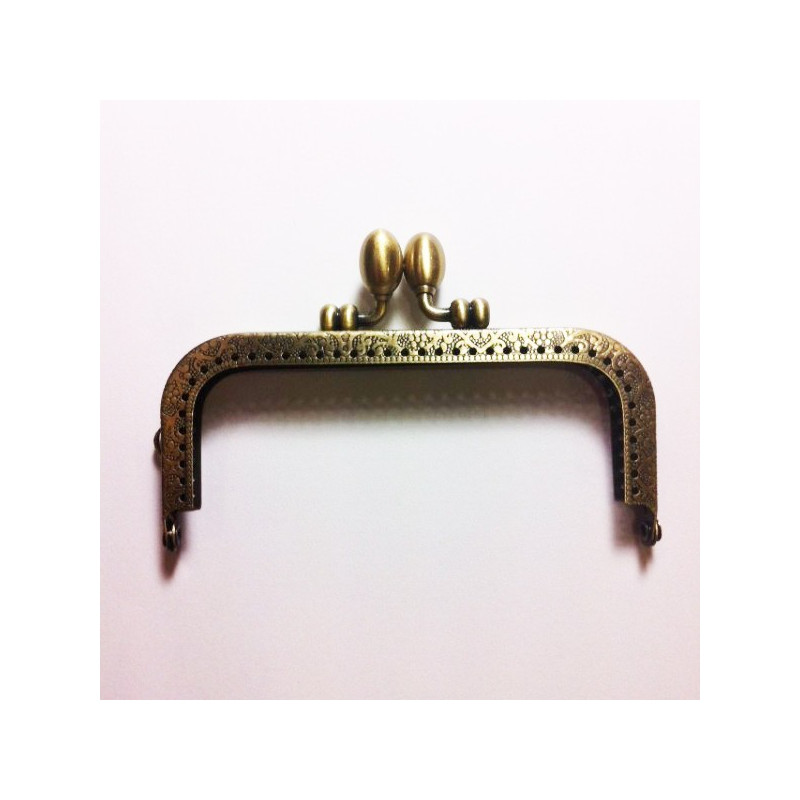 Fecho retangular para carteiras em ouro velho trabalhado.