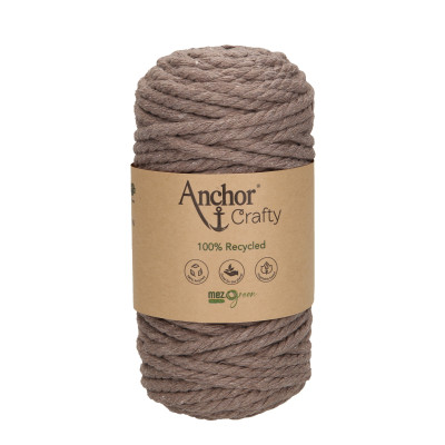 Anchor Crafty é um fio 100% reciclado fabricado a partir de resíduos têxteis e plásticos, tornando-o amigo do ambiente e sustentável. O fio é corda na sua construção; composto por um cordão macio de 3 camadas torcidas com cerca de 5 mm de espessura, muito fácil de trabalhar, ideal para iniciantes no artesanato e para projetos de rápida execução.