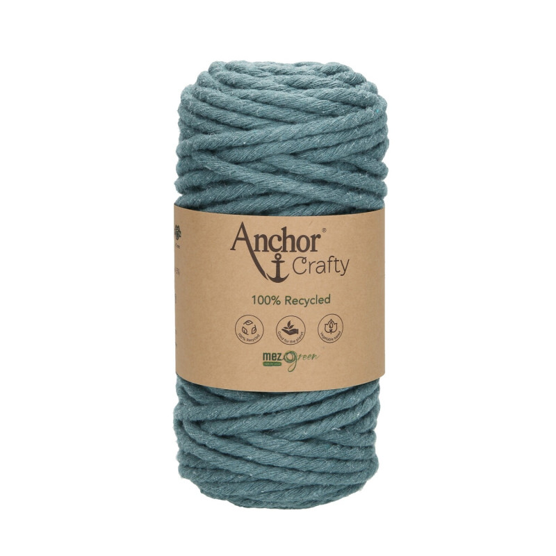 Anchor Crafty é um fio 100% reciclado fabricado a partir de resíduos têxteis e plásticos, tornando-o amigo do ambiente e sustentável. O fio é corda na sua construção; composto por um cordão macio de 3 camadas torcidas com cerca de 5 mm de espessura, muito fácil de trabalhar, ideal para iniciantes no artesanato e para projetos de rápida execução.