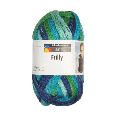 Frilly apresenta-se numa estrutura de fita que combina diferentes tonalidades.  Esta estrutura especial permite criar peças modernas, coloridas e alegres de forma fácil e rápida.  Frilly é perfeito para acessórios de moda  com visual de folhos  como cachecóis ou pequenos apontamentos como golas e punhos. Um único novelo permite criar um cachecol.