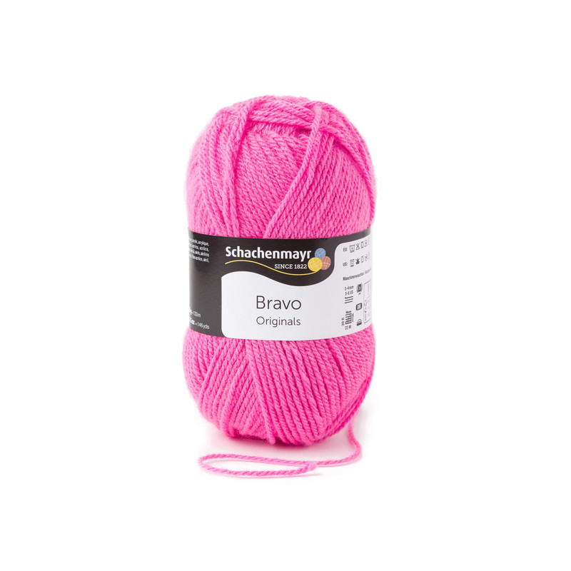 Bravo, da Schachenmayr, é um fio acrílico disponível em novelos de 50 gramas em cores vibrantes. É perfeito para tricotar peças de vestuário, acessórios e outros projetos, como mantas de quadradinhos de crochê ou outras técnicas.