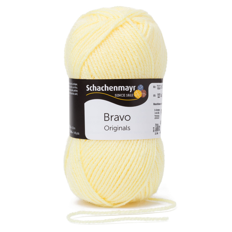 Bravo, da Schachenmayr, é um fio acrílico disponível em novelos de 50 gramas em cores vibrantes. É perfeito para tricotar peças de vestuário, acessórios e outros projetos, como mantas de quadradinhos de crochê ou outras técnicas.