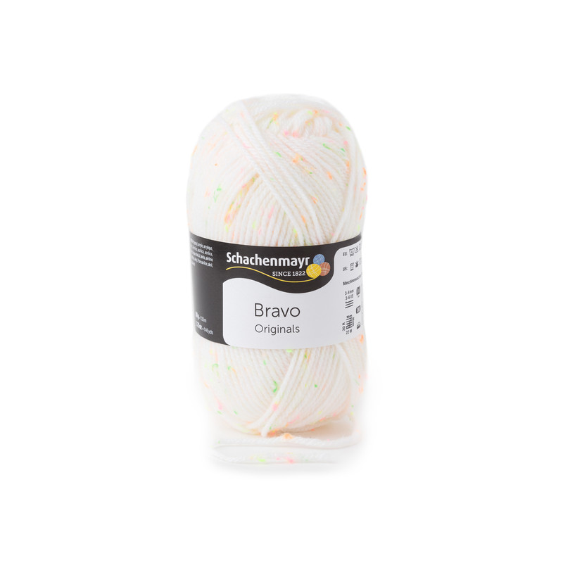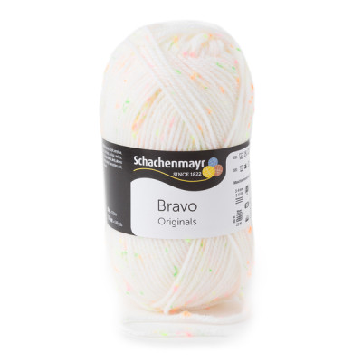 Bravo, da Schachenmayr, é um fio acrílico disponível em novelos de 50 gramas em cores vibrantes. É perfeito para tricotar peças de vestuário, acessórios e outros projetos, como mantas de quadradinhos de crochê ou outras técnicas.