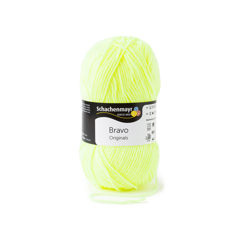 Bravo, da Schachenmayr, é um fio acrílico disponível em novelos de 50 gramas em cores vibrantes. É perfeito para tricotar peças de vestuário, acessórios e outros projetos, como mantas de quadradinhos de crochê ou outras técnicas.