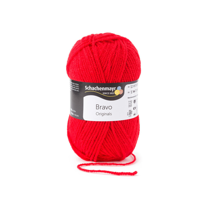 Bravo, da Schachenmayr, é um fio acrílico disponível em novelos de 50 gramas em cores vibrantes. É perfeito para tricotar peças de vestuário, acessórios e outros projetos, como mantas de quadradinhos de crochê ou outras técnicas.