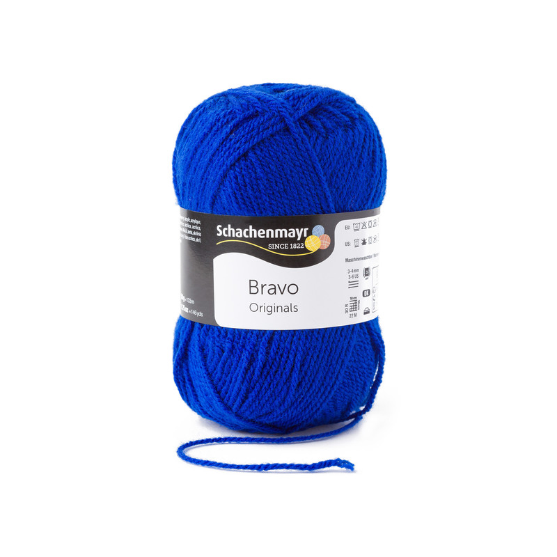Bravo, da Schachenmayr, é um fio acrílico disponível em novelos de 50 gramas em cores vibrantes. É perfeito para tricotar peças de vestuário, acessórios e outros projetos, como mantas de quadradinhos de crochê ou outras técnicas.