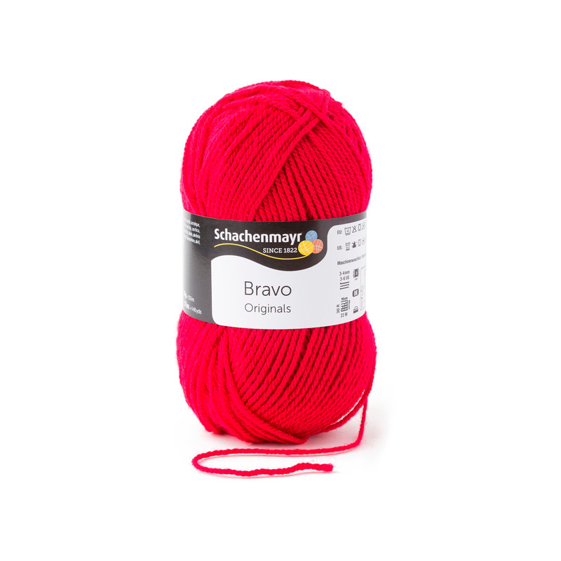 Bravo, da Schachenmayr, é um fio acrílico disponível em novelos de 50 gramas em cores vibrantes. É perfeito para tricotar peças de vestuário, acessórios e outros projetos, como mantas de quadradinhos de crochê ou outras técnicas.