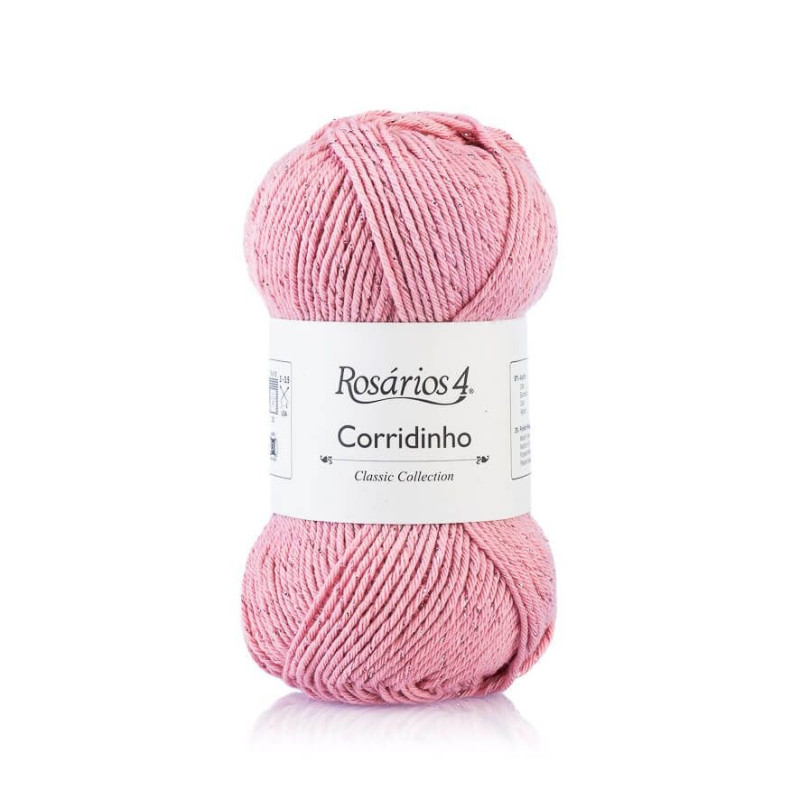 O fio Corridinho combina o algodão com uma fibra de brilho metálico, que consegue um efeito luminoso muito elegante.