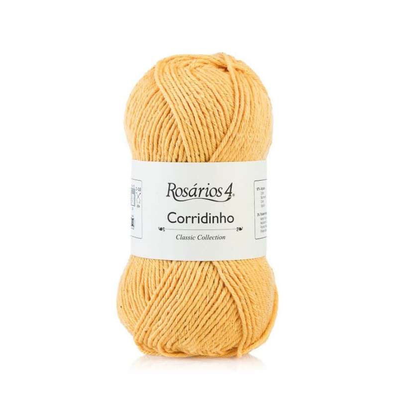 O fio Corridinho combina o algodão com uma fibra de brilho metálico, que consegue um efeito luminoso muito elegante.