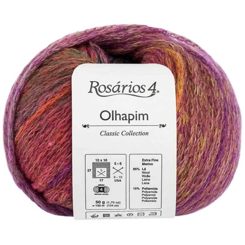O fio Olhapim combina a elegância da lã merino com a resistência e versatilidade da poliamida. Com uma paleta de cores marmorizadas que se entrelaçam harmoniosamente, Rosarios4 Olhapim forma combinações de cores únicas. Ideal para realizar projetos com vitalidade e alegria.