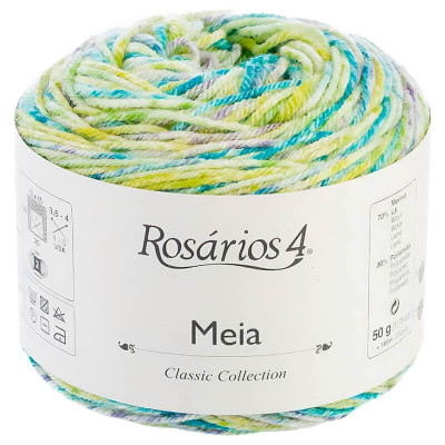 Meia Print é um fio colorido, feito de lã merino e poliamida. Essa composição proporciona total conforto, pois enquanto a lã merino oferece maciez e doçura ao toque, a poliamida dá um ponto extra de flexibilidade para que seus projetos se adaptem a cada movimento. Isso o torna especial para meias de tricot.