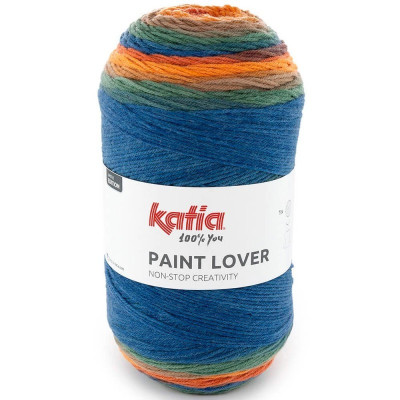 Gradientes deslumbrantes num único novelo. Crie projetos únicos com Katia Paint Lover , um fio de formato XL que mistura acrílico (70%) e lã (30%) para proporcionar maciez, leveza e um resultado visualmente impressionante.