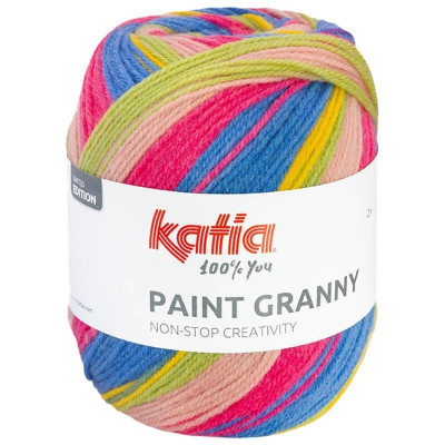 Katia Paint Granny  é uma mistura de lã e acrílico perfeita para crochetar quadrados de crochet com facilidade. Cada novelo de 150 gramas apresenta uma combinação de 5 cores que se repetem de forma consistente e idêntica, permitindo que você crochete quadrados multicoloridos que podem ser combinados para criar golas, cachecóis, mantas e outros projetos.