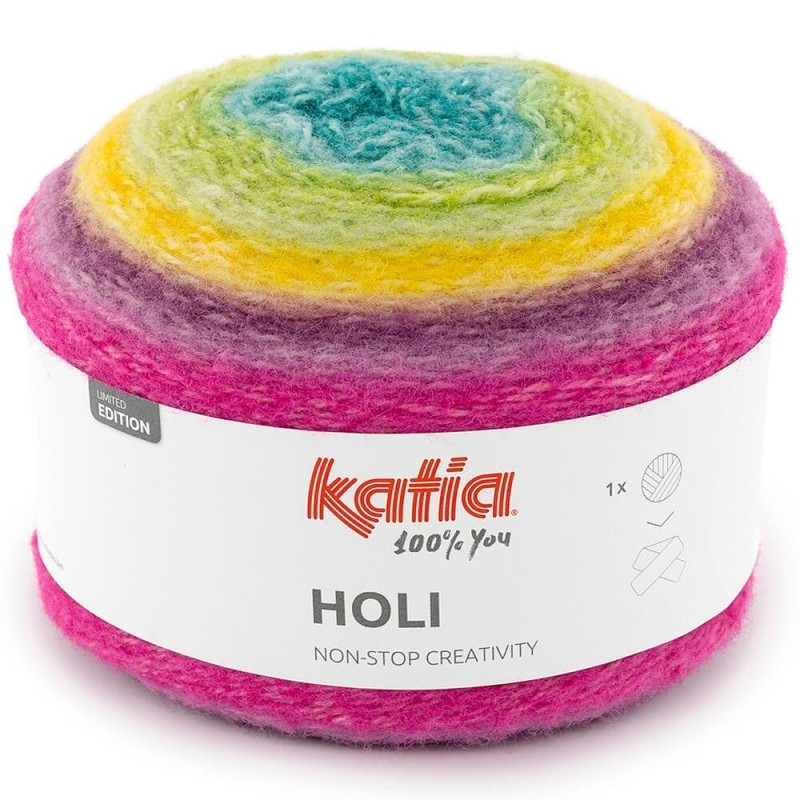 Encante-se com Katia Holi, um fio único com um degradê perfeito em novelos de 200 g. Sua mistura inovadora de lã, acrílico e poliamida proporciona estrutura, maciez e um efeito aveludado sutil e moderno. Tricote um cachecol ou faça um xale de crochê com apenas um novelo! Ouse criar peças multicoloridas e exclusivas com Katia Holi.
