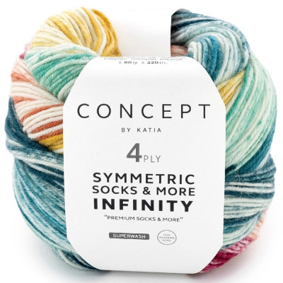 Explore um novo nível de cor e estilo com Katia Symmetric Socks & More Infinity 4-ply , o fio ideal para quem busca um design moderno e dinâmico em seus tricôs. Composto por 75% lã virgem e 25% poliamida, este fio se destaca pelo efeito de listras finas e contínuas, criando um acabamento visual suave e fluido.