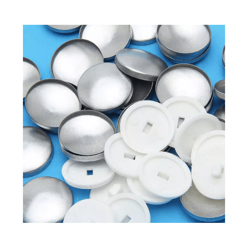 * Botão bombe Cardenas para forrar* Pode usar o próprio tecido para forrar* Pé branco plástico vazado* Simples e muito fácil* As matrizes são vendidas à parte