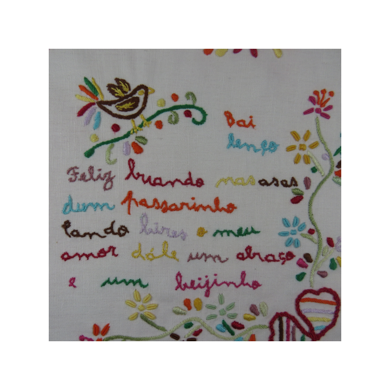 Cada lenço é uma peça única, que retrata sentimentos amorosos. As frases são escritas com erros ortográficos devido à idade e escolaridade das primeiras bordadeiras, era a fonética que importava. É um quadrado não perfeito.