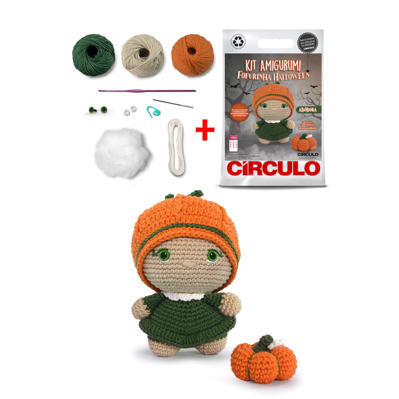 O Kit Amigurumi Fofurinha Halloween conta com cinco modelos de terror superfofos: Cinco modelos: Abóbora, Bruxinha, Espantalho, Feiticeiro e Vampiro. Todos contem o material necessário para a produção de amigurumis assustadoramente divertidos dessa coleção.