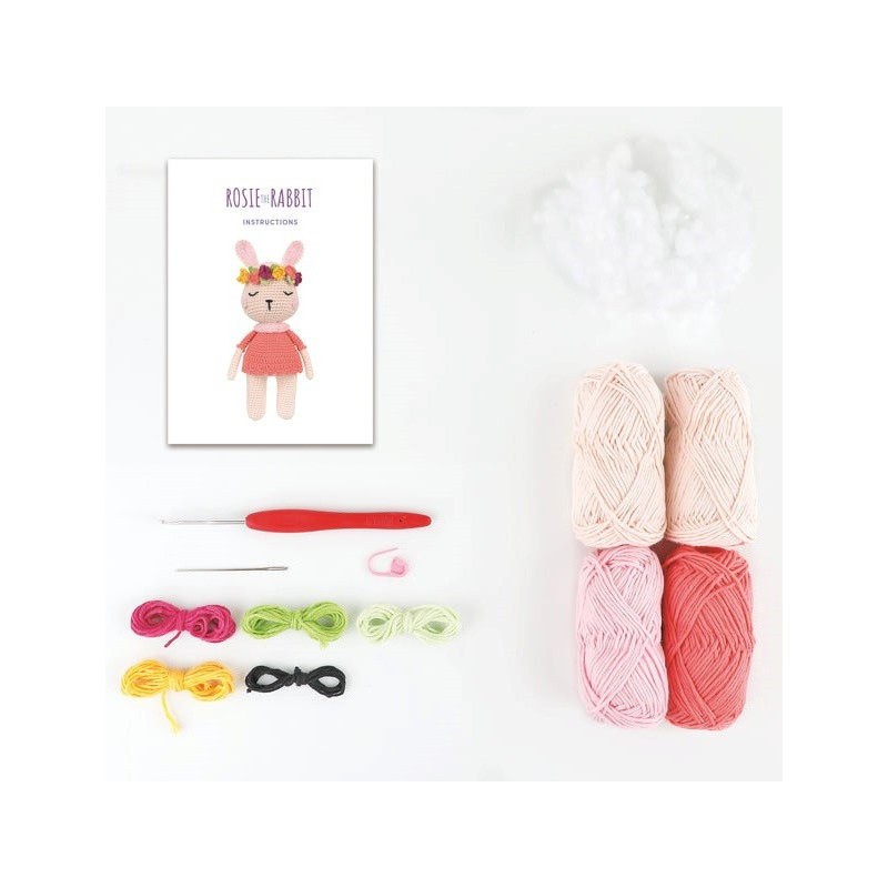 917 321 358**Os crocheteiros de nível intermédio vão adorar dar vida a este grande desenho da coelha Rosie. O kit contém tudo que você precisa para fazer seu amigurumi, incluindo fio 100% Algodão , linha, agulha de crochet, acessórios, enchimento e instruções.