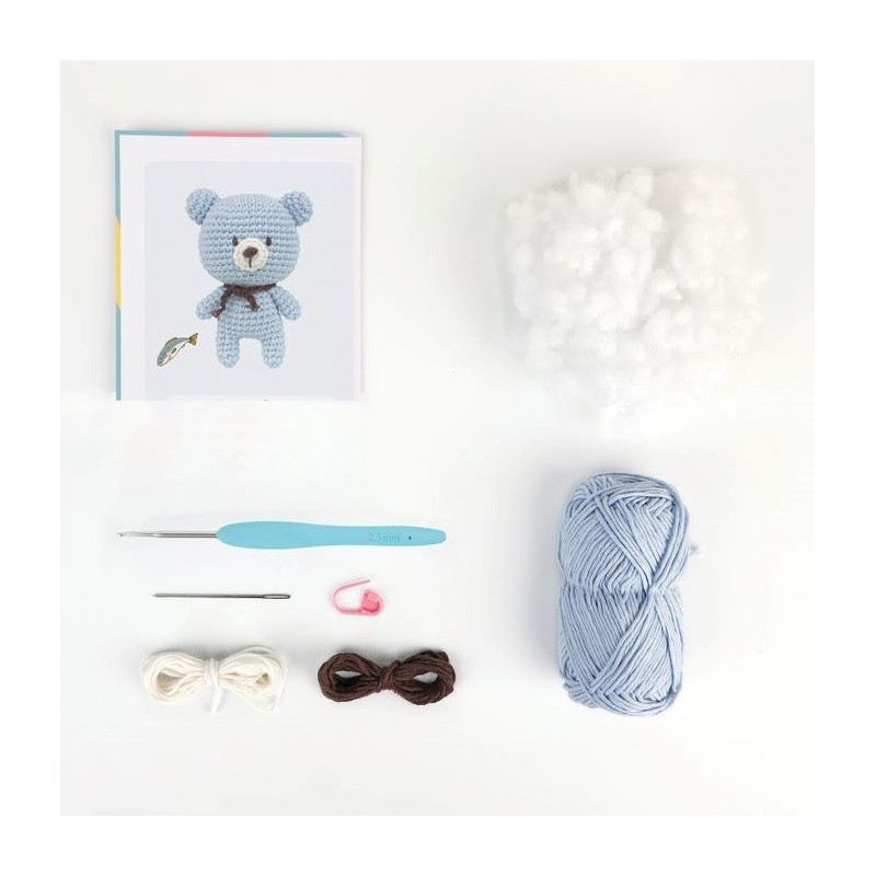 Os crocheteiros principiantes vão adorar dar vida a este mini desenho do urso Bobby. O kit contém tudo o que você precisa para fazer seu amigurumi, incluindo fio 100% algodão, linha, agulha de crochet, acessórios, enchimento e instruções.