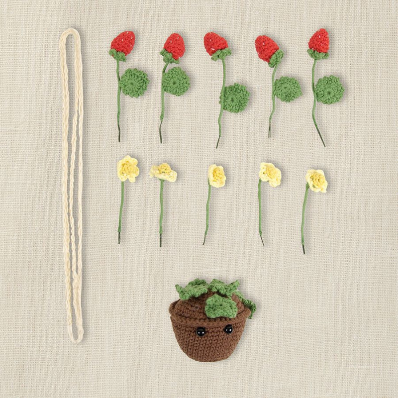 Se gosta de plantas mas não tem jeito para a jardinagem, este kit de amigurumi, desenhado por Nuria Picos, é para si. A sua criação durará para sempre e ficará muito bem pendurada numa prateleira. O kit contém tudo o que é necessário para fazer o projeto, incluindo dois novelos de Happy Cotton, cinco meadas de Retors Mat, uma agulha de crochet de 3 mm e uma agulha. Acrescente os pormenores com os olhos de segurança incluídos e o fio de bordar Mouliné Spécial®.