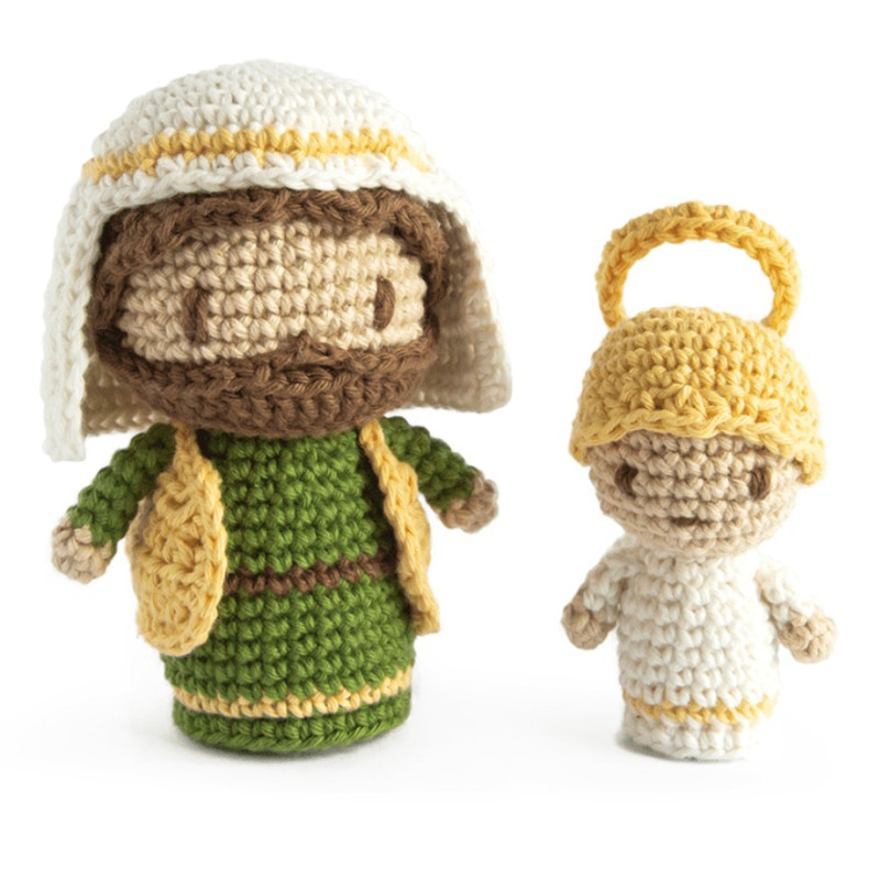 Modelo de um conjunto de boneco inspirados pelo Presépio, incluindo José de Nazaré e o Anjo Gabriel.